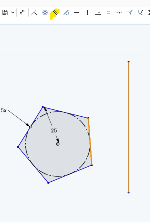 Step 3) Make that line parallel to the line of the polygon using the parallel constraint