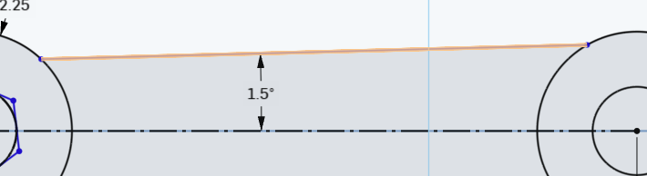 Step 3)  Click on the top line and construction and dimension the 1.5 degree angle