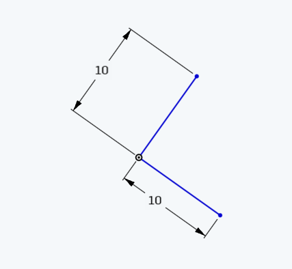 Step 1) Create 2 line segments, centered at the origin (as always) and dimension them to 10 MM each