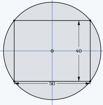 Step 3) Make a circle centered at the origin. The 4 points of the rectangle should be coincident with this circle. Resulting picture: