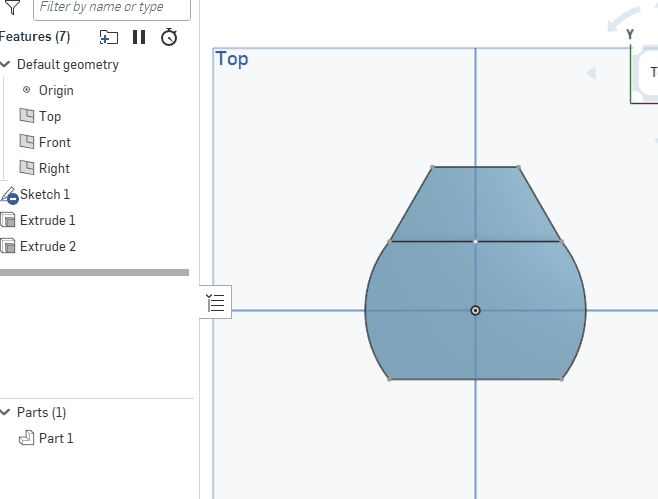 Create at least 3 interconnected shapes (circle, arcs, rectangles etc..). Perform either a revolve, a loft or a sweep. I will give an extra credit point if yo udo a sweep or loft!