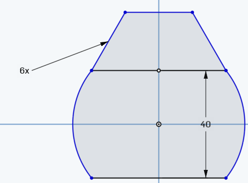 Step 5) Create a circumscribed polygon with 6 sides (hexagon). The 2 vertices should be coident with the points as shown below:
