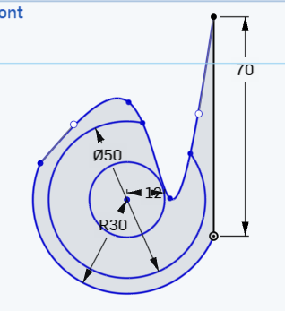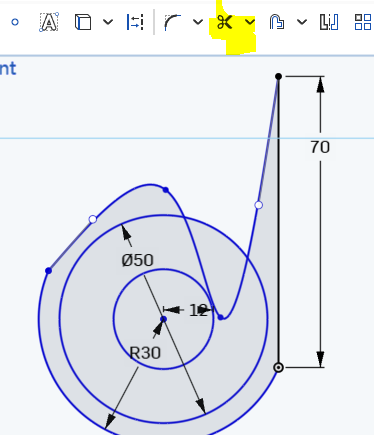Step 5) Add 2 circles and dimension both of them to 12 (smaller ) and 50 (outer) as shown below: