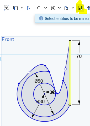 Step 8) Select the mirror icon and the mirror line indicated: