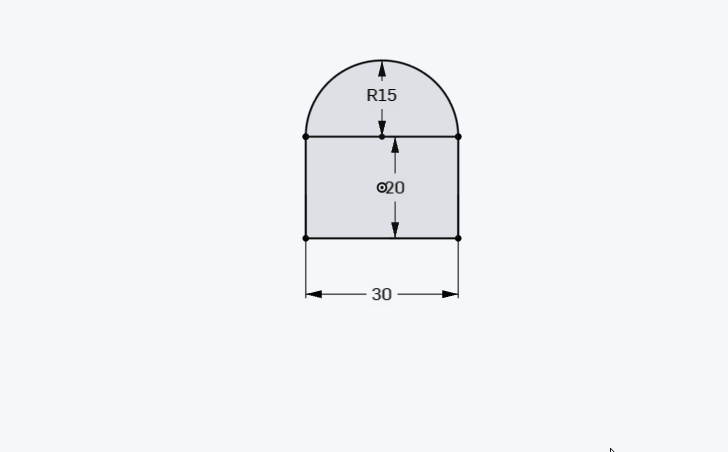 Step 4)  Create a semicircle with a radius of 15  (use or or make a circle and cut half off with the scisoors tool