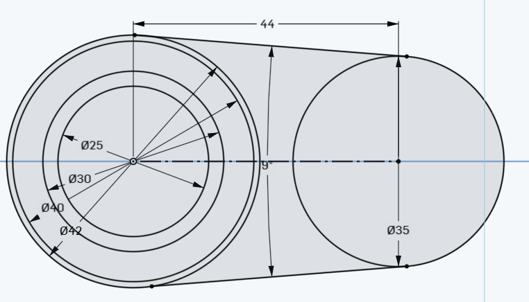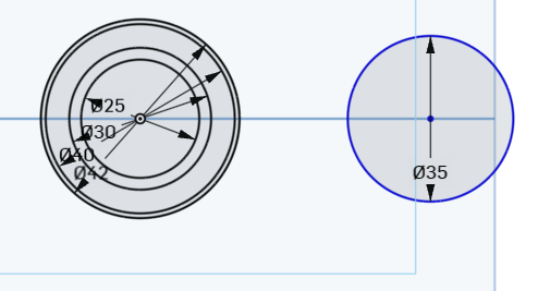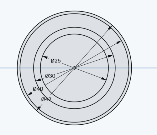 Step 1) Create a 25, 30 , 40 and 42 MM circles all centered at the orig